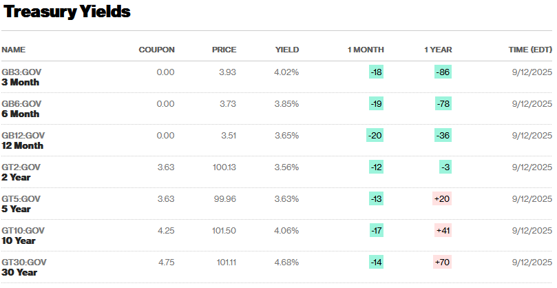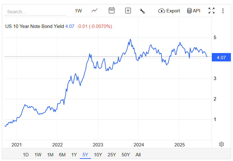 Here, I must also mention the issuance of bills, notes, and bonds, which are how the US government directly finances itself. However, we know that no one is interested in buying these bonds, which is why the returns, or interest, on buying them are so high. In the image below, you can see a slight decline in bond yields, but it is still too high when compared to previous years.