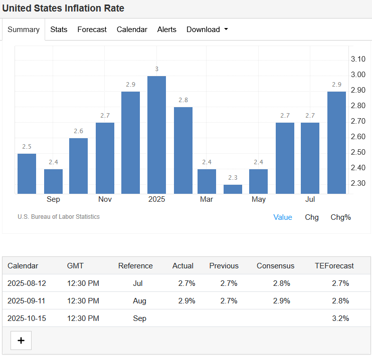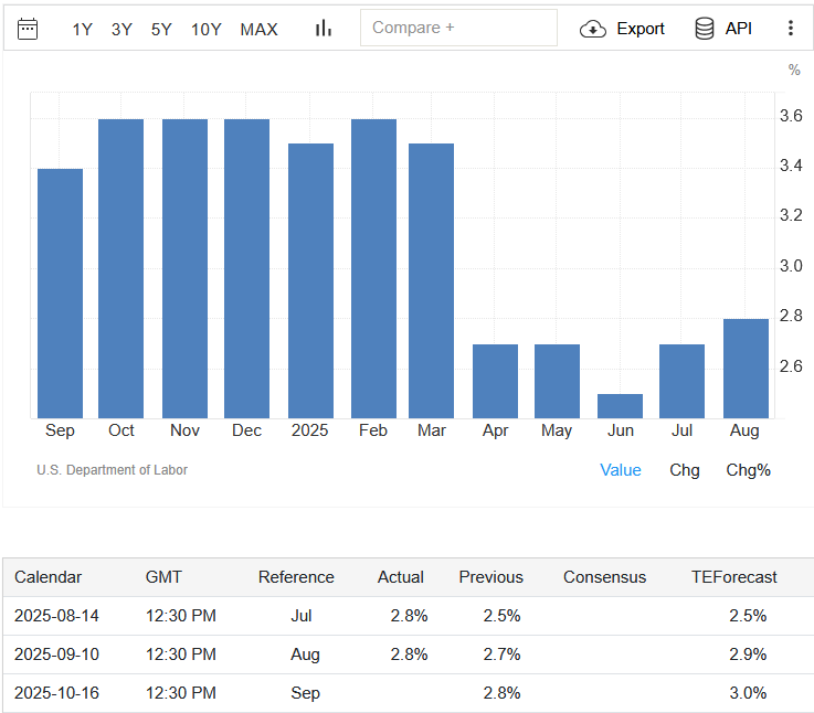 If you look at the images below, the PPI index was expected to increase by as much as 0.4% (largely due to Trump’s tariffs), but it actually came in lower than expected at 0.1% / 0.4% decrease from the forecast. To clarify, this number reflects the increase in the price of products or components in the US from the producer’s perspective.