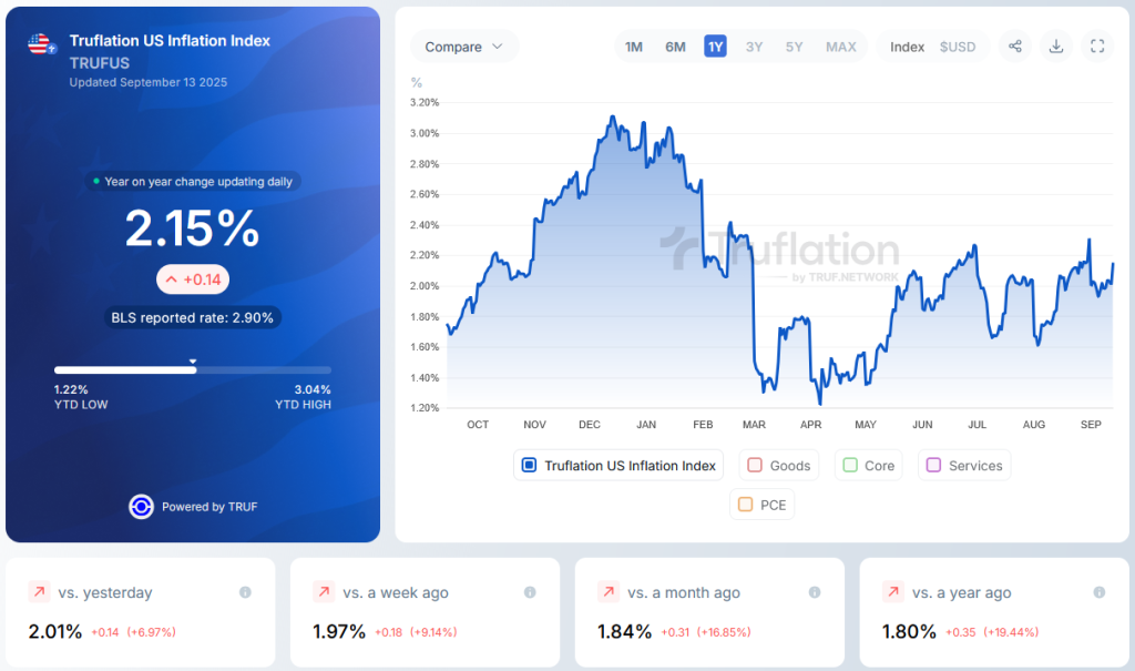 I always look at another inflation metric that I consider to be the most accurate: Trueflation. Compared to last month, it has increased by 0.31% and is now at 2.15%, which is realistically the number the Fed is fighting to achieve.