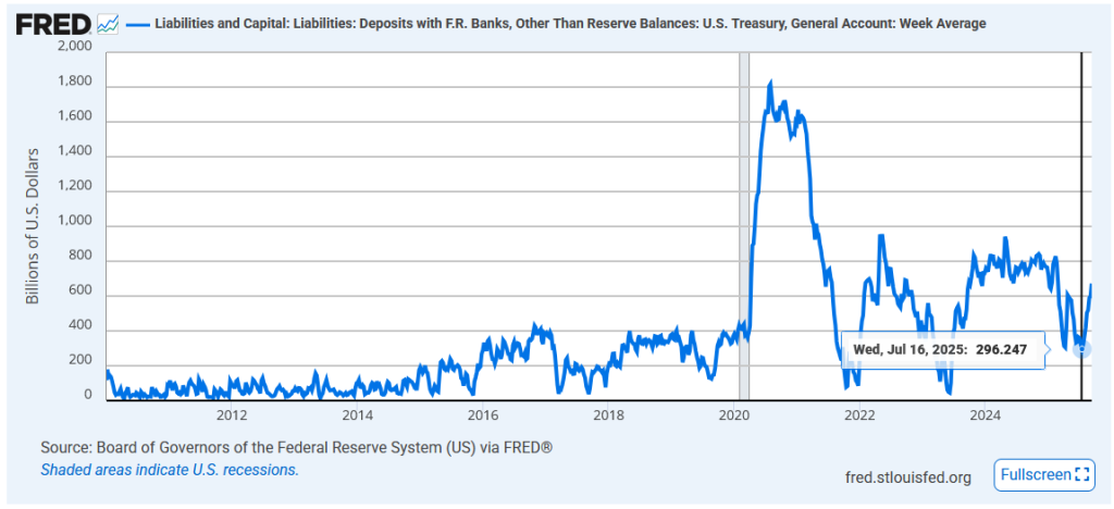 Now, what does this mean? It means that the money that is free to use—for borrowing, in other words—is returning to this fund, which creates a tightening effect on monetary policy. In the short term, this is bad for the market, which is why we’ve seen stagnation in the prices of crypto and the overall market over the last two months.
